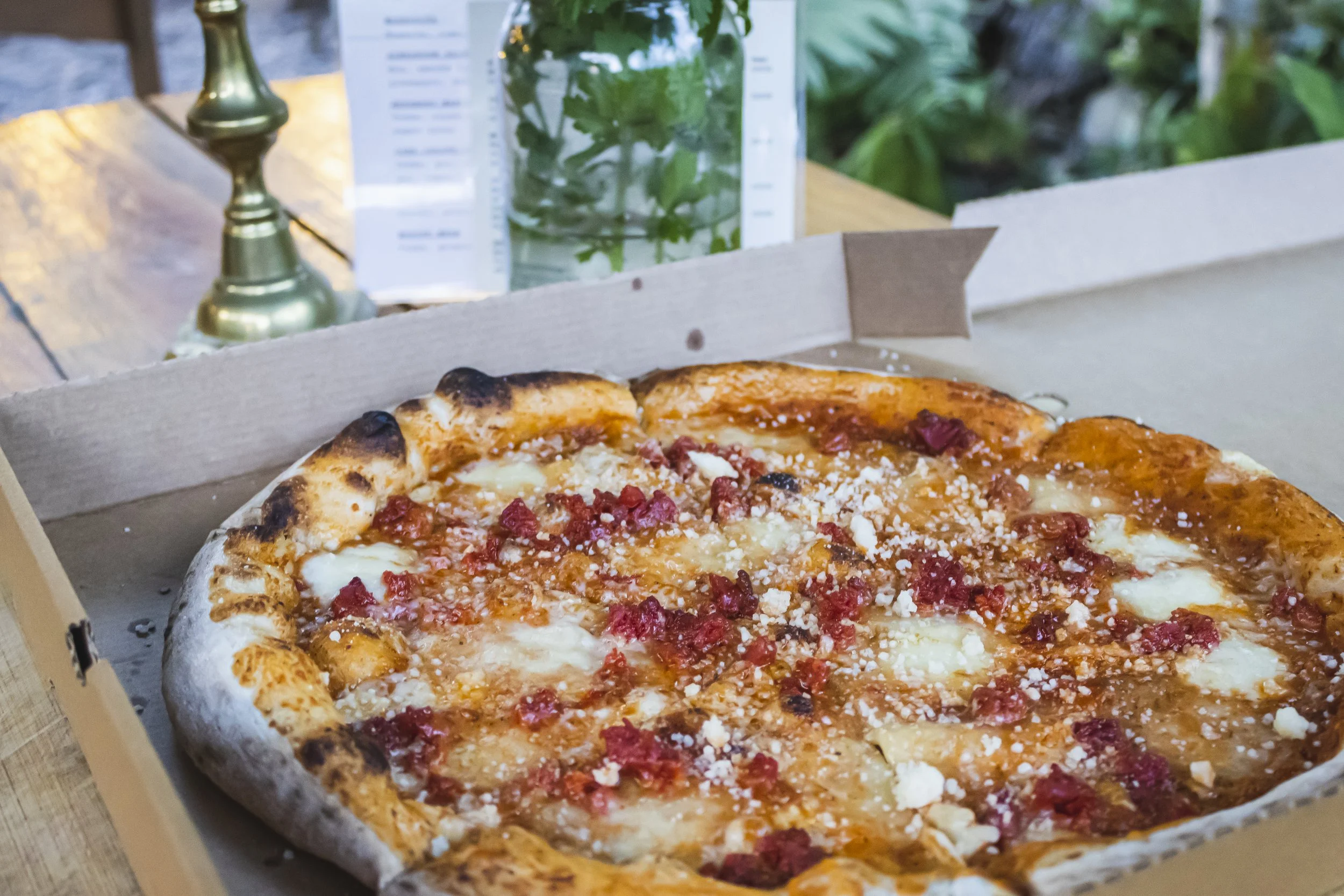 Each weekend, the scent of oak smoke drifts through the trees as we fire up the oven for our artisan, wood-fired pizzas — hand-stretched, slow-fermented, and inspired by the wild around us.